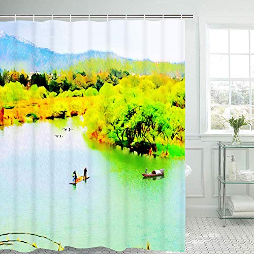 Bdhbhduio Mountain Tree Shower Curtain Forest Lake Shower Curtain Nature Scene Bathroom Decor Accessory With Hooks
